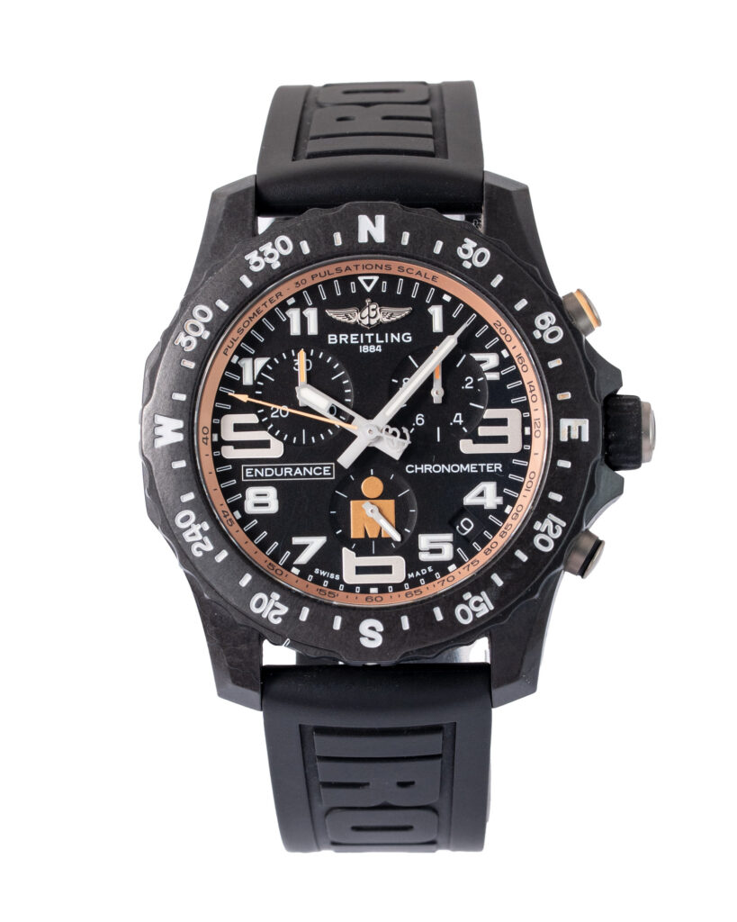 brand: Breitling Reference: X82310 Model: Endurance Pro case MATERIAL: Carbon strap: Rubber case Size (MM): 40mm Dial colour: Black Condition: Good Box papers : Paperwork/box