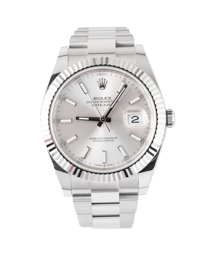 brand: Rolex Reference: 126334 Model: Datejust case MATERIAL: Steel strap: Bracelet case Size (MM): 41mm Dial colour: Silver Bezel: White Gold Year: 09/2022 Condition: Excellent Box papers : Paperwork/box