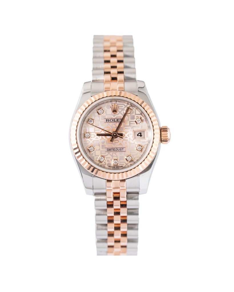 brand: Rolex Reference: 179171 Model: Lady-Datejust case MATERIAL: Steel & Rose Gold strap: Bracelet case Size (MM): 26mm Dial colour: Pink Bezel: Rose Gold Condition: Excellent Box papers : Paperwork/box