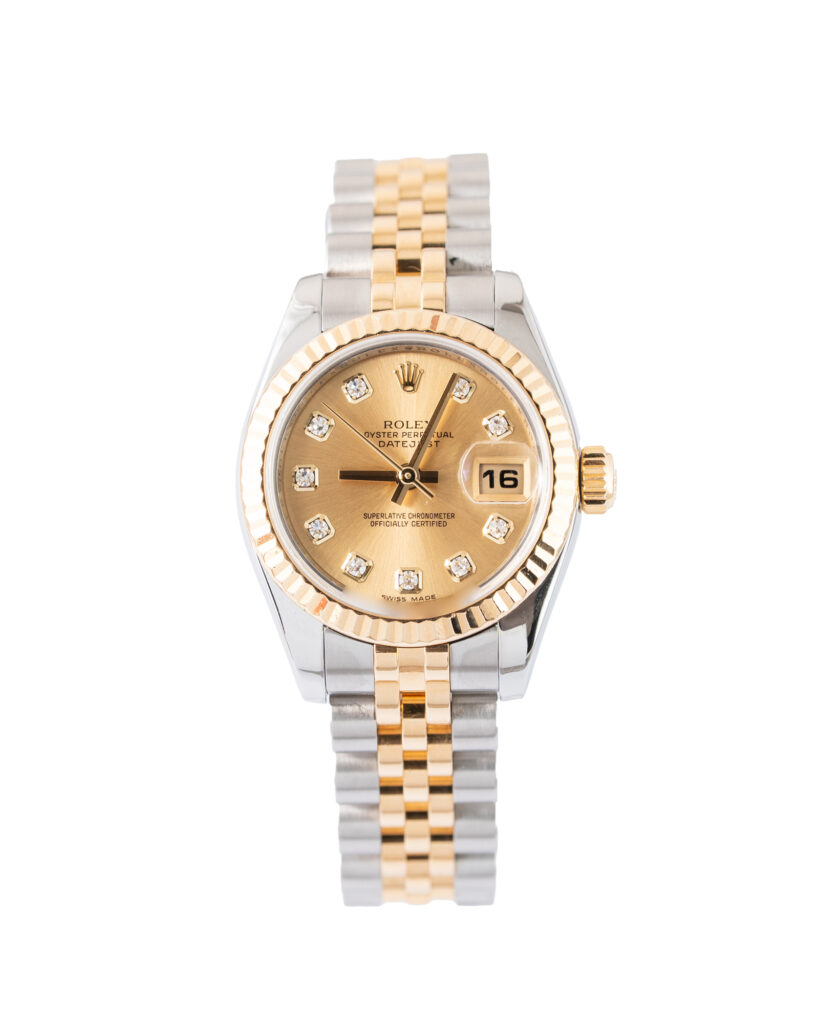 brand: Rolex Reference: 179173 Model: Datejust case MATERIAL: Steel & Yellow Gold strap: Bracelet case Size (MM): 26mm Dial colour: Champagne Bezel: Yellow Gold Condition: Excellent Box papers : Watch Only