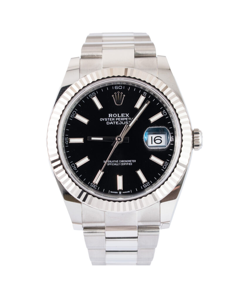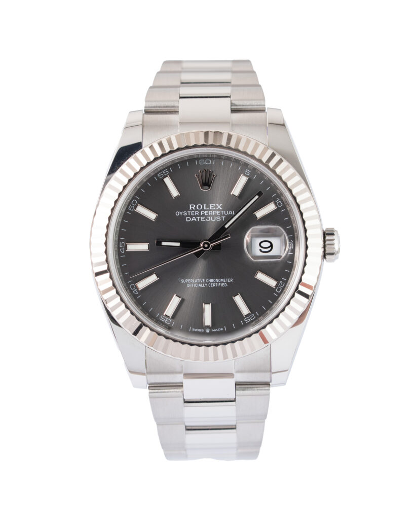 brand: Rolex Reference: 126334 Model: Datejust case MATERIAL: Steel strap: Bracelet case Size (MM): 41mm Dial colour: Grey Bezel: White Gold Condition: Excellent Box papers : Paperwork/box