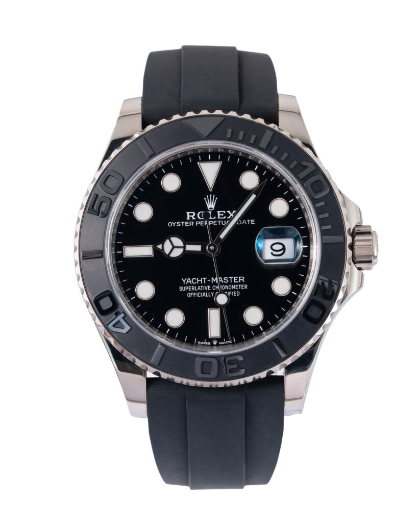 brand: Rolex Reference: 226659 Model: Yacht-Master case MATERIAL: White Gold strap: Rubber case Size (MM): 42mm Dial colour: Black Bezel: Ceramic Year: 08/2020 Condition: Excellent Box papers : Paperwork/box