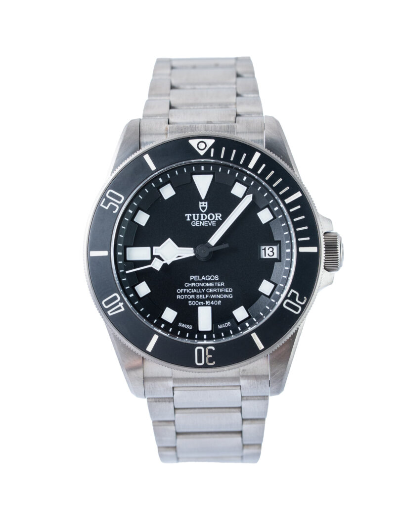 brand: Tudor Reference: 25600TN Model: Pelagos case MATERIAL: Titanium strap: Bracelet case Size (MM): 42mm Dial colour: Black Bezel: Titanium Year: 06/2023 Condition: Excellent Box papers : Paperwork/box