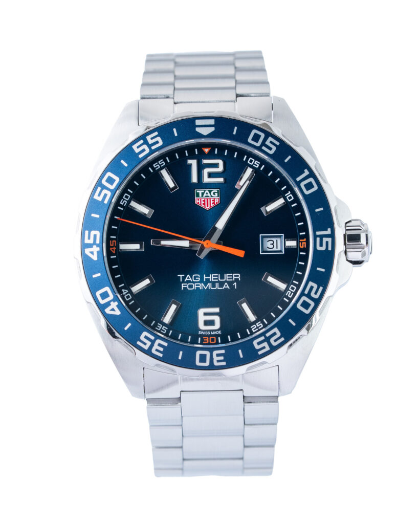 brand: Tag Heuer Reference: WAZ1010.BA0842 Model: Formula 1 case MATERIAL: Steel strap: Bracelet case Size (MM): 43mm Dial colour: Blue Bezel: Steel Year: 01/2025 Condition: Excellent Box papers : Paperwork/box