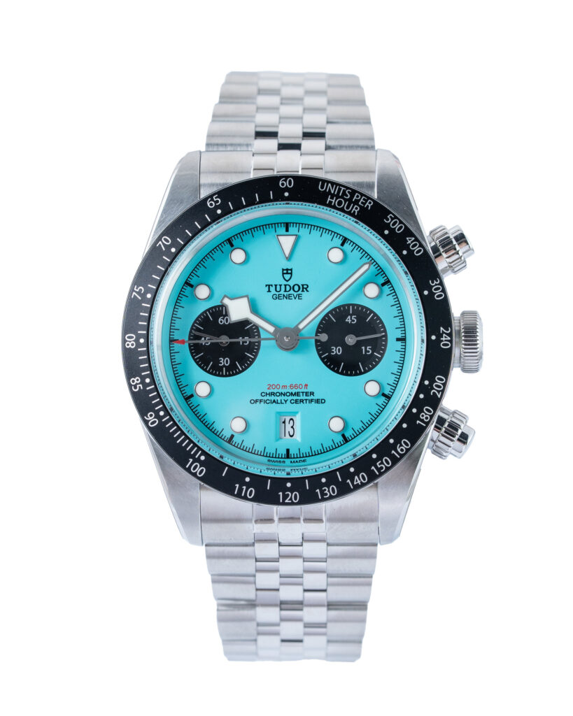 brand: Tudor Reference: 79360N Model: Black Bay Chronograph case MATERIAL: Steel strap: Bracelet case Size (MM): 41mm Dial colour: Blue Bezel: Steel Year: 11/2025 Condition: Unworn Box papers : Paperwork/box