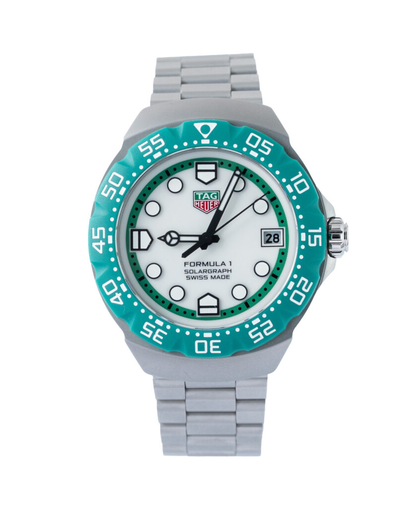 brand: Tag Heuer Reference: WBY1113.BA0042 Model: Formula 1 Solargraph case MATERIAL: Steel strap: Bracelet case Size (MM): 38mm Dial colour: White Bezel: Ceramic Year: 07/2025 Condition: Unworn Box papers : Paperwork/box