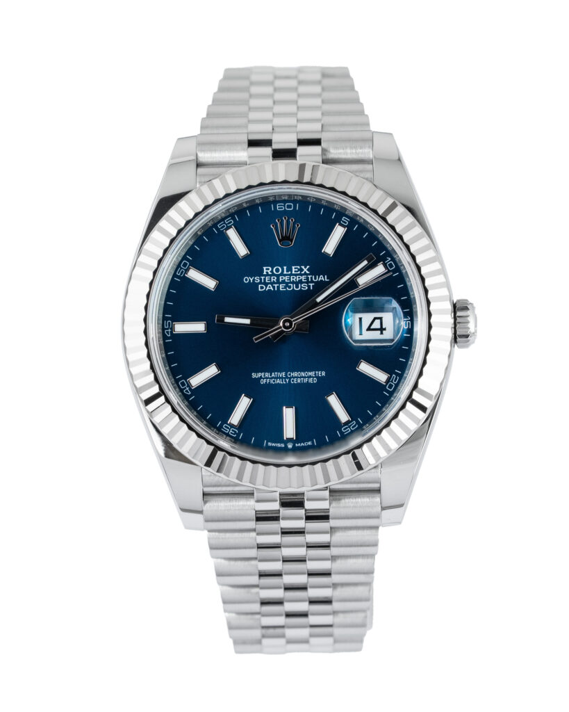 brand: Rolex Reference: 126334 Model: Datejust case MATERIAL: Steel strap: Bracelet case Size (MM): 41mm Dial colour: Blue Bezel: White Gold Year: 04/2025 Condition: Excellent Box papers : Paperwork/box