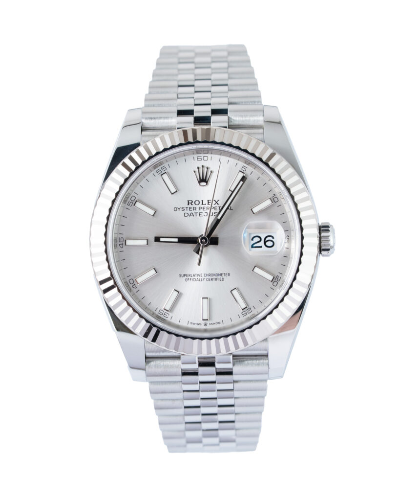 brand: Rolex Reference: 126334 Model: Datejust case MATERIAL: Steel strap: Bracelet case Size (MM): 41mm Dial colour: Silver Bezel: White Gold Year: 02/2022 Condition: Excellent Box papers : Paperwork/box