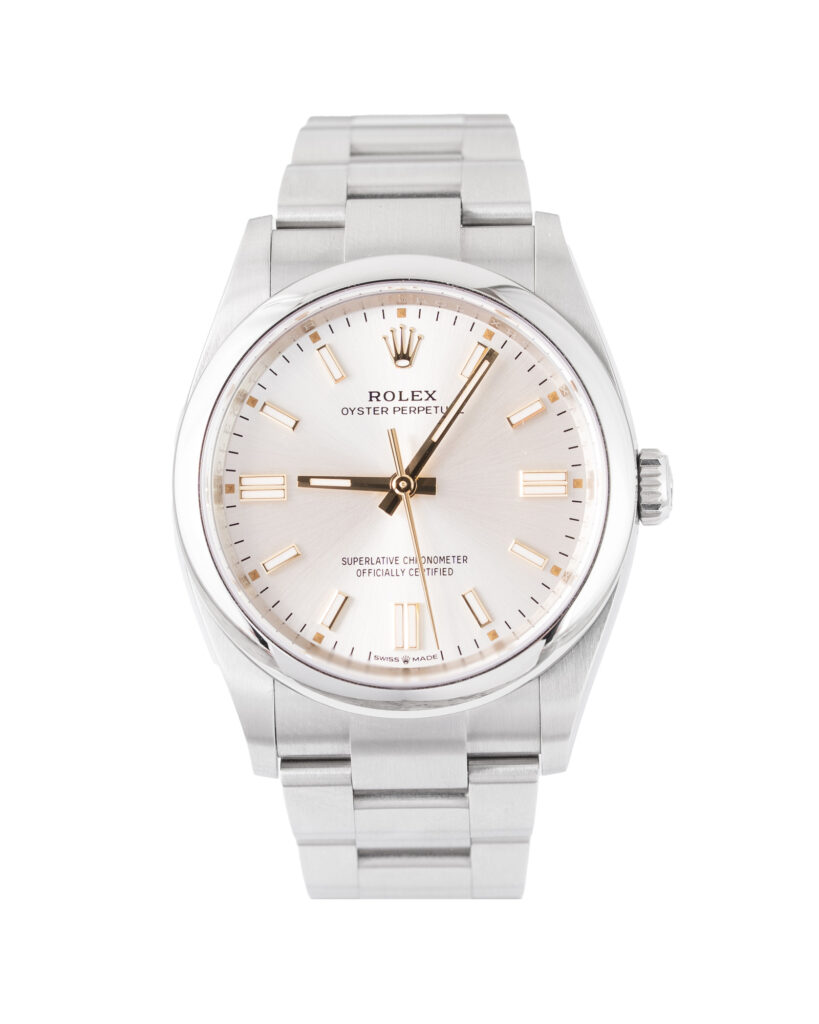 brand: Rolex Reference: 126000 Model: Oyster Perpetual case MATERIAL: Steel strap: Bracelet case Size (MM): 36mm Dial colour: Silver Bezel: Steel Year: 12/2025 Condition: Unworn Box papers : Paperwork/box