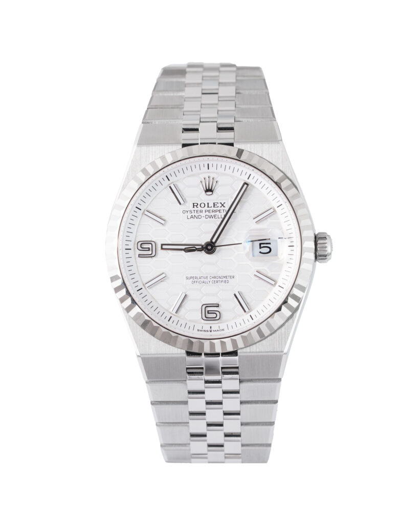 brand: Rolex Reference: 127234 Model: Land-Dweller case MATERIAL: Steel strap: Bracelet case Size (MM): 36mm Dial colour: White Bezel: Steel Year: 11/2025 Condition: Excellent Box papers : Paperwork/box