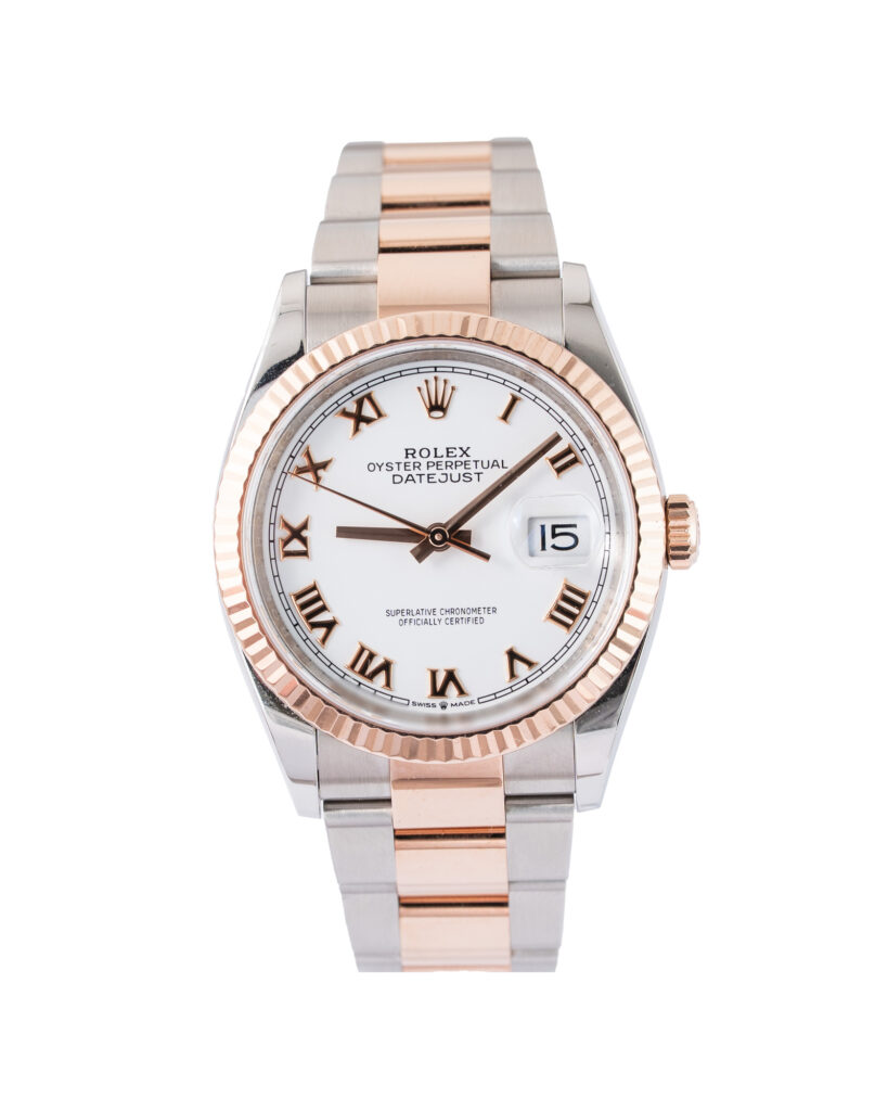brand: Rolex Reference: 126231 Model: Datejust case MATERIAL: Steel & Rose Gold strap: Bracelet case Size (MM): 36mm Dial colour: White Bezel: Rose Gold Year: 06/2021 Condition: Excellent Box papers : Box