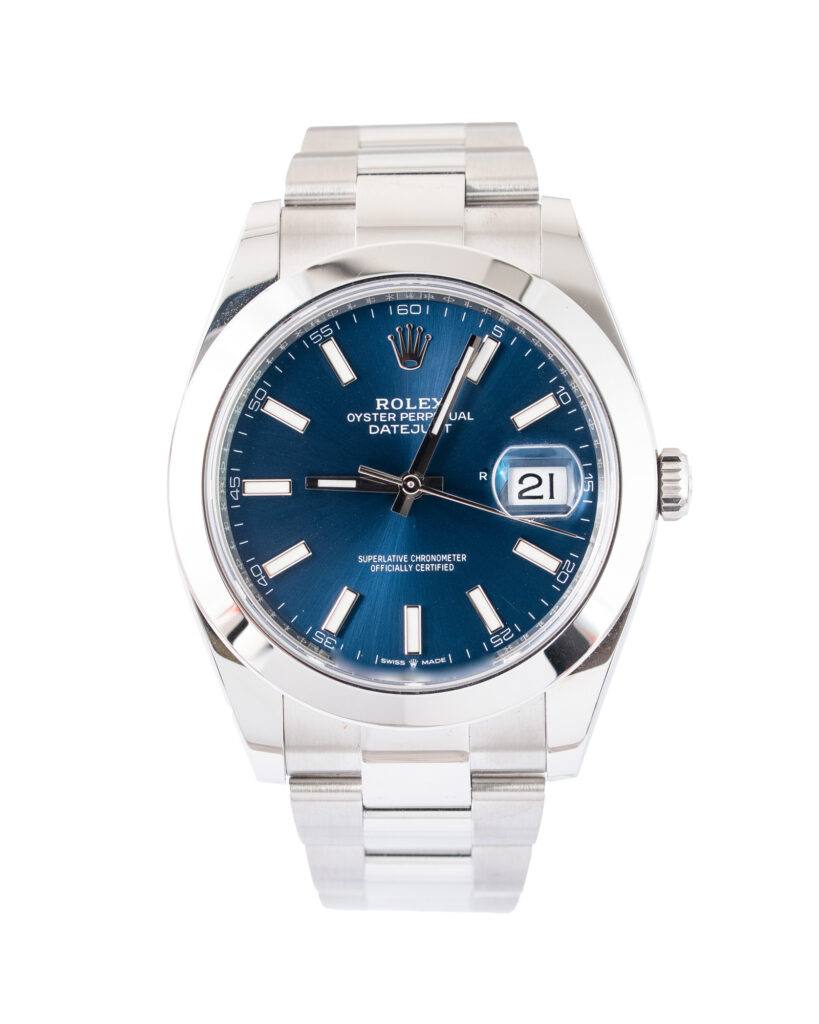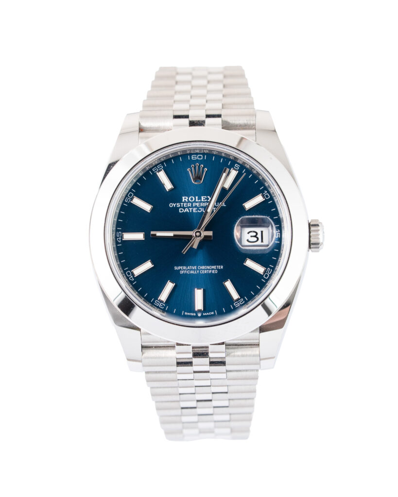 brand: Rolex Reference: 126300 Model: Datejust case MATERIAL: Steel strap: Bracelet case Size (MM): 41mm Dial colour: Blue Bezel: Steel Condition: Excellent Box papers : Paperwork/box