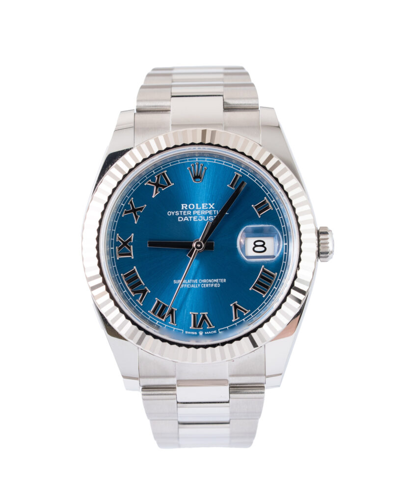 brand: Rolex Reference: 126334 Model: Datejust case MATERIAL: Steel strap: Bracelet case Size (MM): 41mm Dial colour: Blue Bezel: White Gold Condition: Excellent Box papers : Paperwork/box