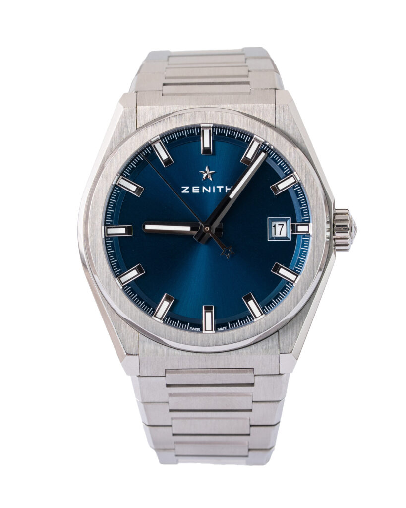 brand: Zenith Reference: 95.9000.670 Model: Defy Classic case MATERIAL: Titanium strap: Bracelet case Size (MM): 41mm Dial colour: Blue Bezel: Titanium Year: 06/2020 Condition: Excellent Box papers : Paperwork/box