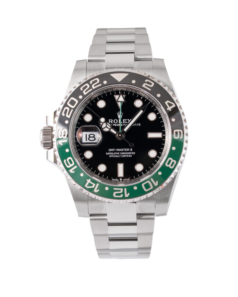 brand: Rolex Reference: 126710GRNR Model: GMT-Master II case MATERIAL: Steel strap: Bracelet case Size (MM): 40mm Dial colour: Black Bezel: Ceramic Year: 09/2024 Condition: Excellent Box papers : Paperwork/box