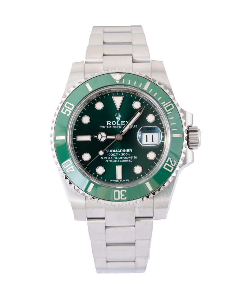 brand: Rolex Reference: 116610LV Model: Submariner case MATERIAL: Steel strap: Bracelet case Size (MM): 41mm Dial colour: Green Bezel: Ceramic Condition: Excellent Box papers : Paperwork/box