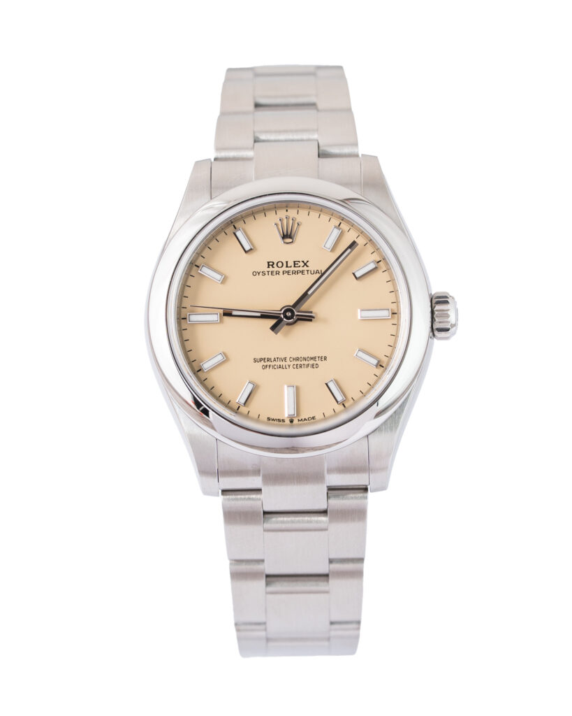 brand: Rolex Reference: 277200 Model: Oyster Perpetual case MATERIAL: Steel strap: Bracelet case Size (MM): 31mm Dial colour: Beige Bezel: Steel Year: 07/2025 Condition: Excellent Box papers : Paperwork/box