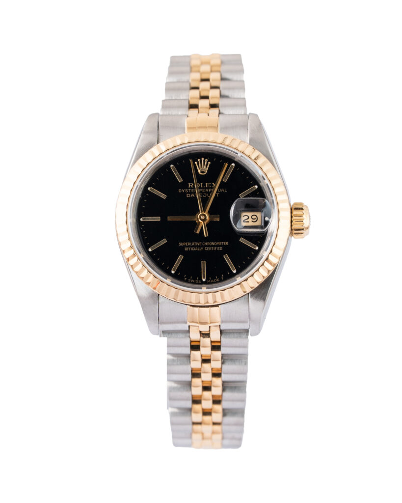 brand: Rolex Reference: 69173 Model: Datejust case MATERIAL: Steel & Yellow Gold strap: Bracelet case Size (MM): 26mm Dial colour: Black Bezel: Yellow Gold Year: 04/1990 Condition: Excellent Box papers : Paperwork/box