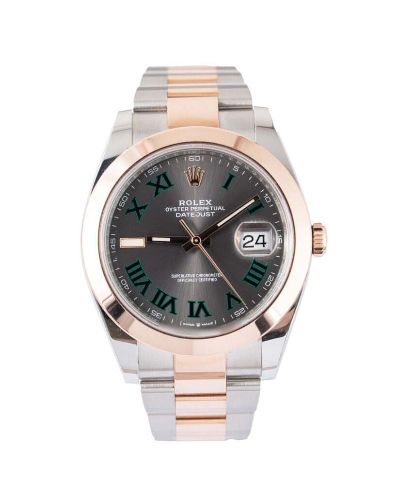 brand: Rolex Reference: 126301 Model: Datejust case MATERIAL: Steel & Rose Gold strap: Bracelet case Size (MM): 41mm Dial colour: Grey Bezel: Rose Gold Condition: Excellent Box papers : Paperwork/box