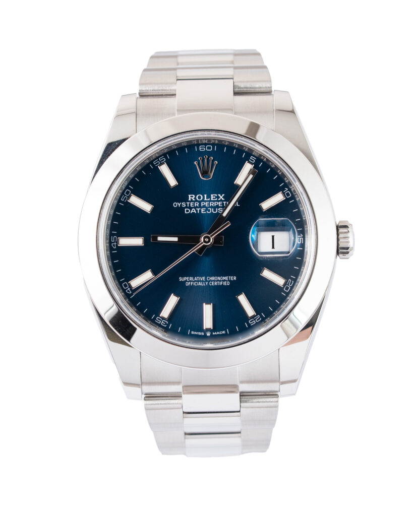 brand: Rolex Reference: 126300 Model: Datejust case MATERIAL: Steel strap: Bracelet case Size (MM): 41mm Dial colour: Blue Bezel: Steel Condition: Excellent Box papers : Paperwork/box