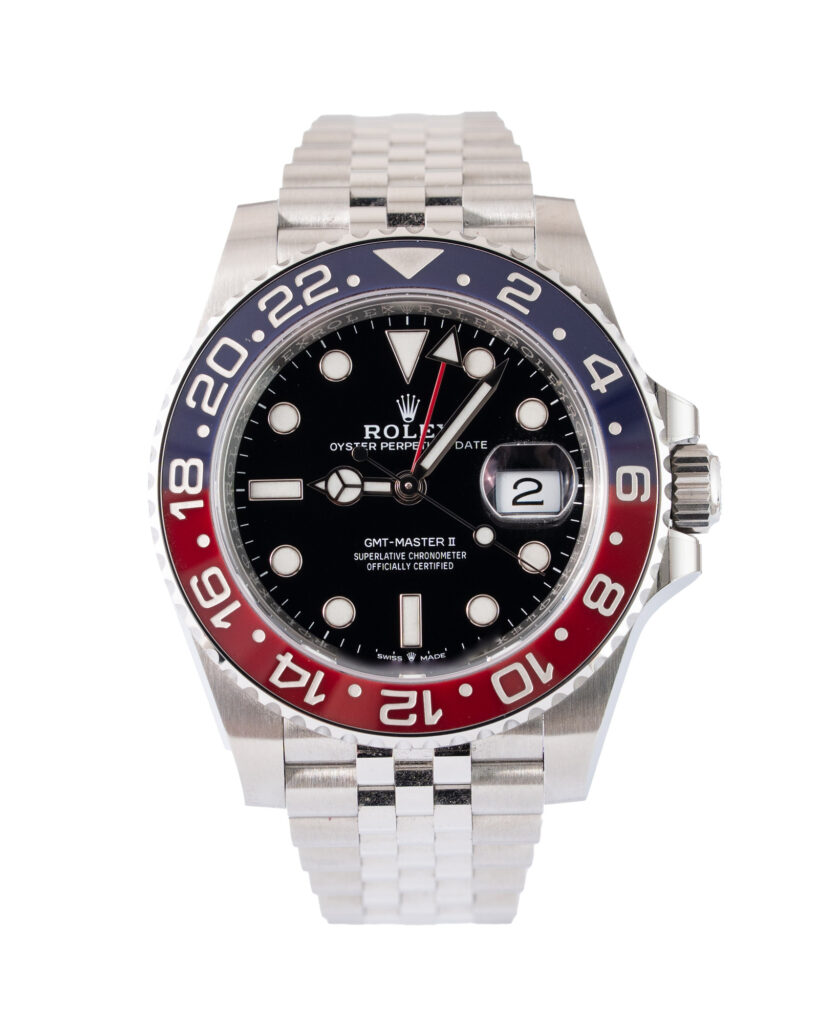 brand: Rolex Reference: 126710BLRO Model: GMT-Master II case MATERIAL: Steel strap: Bracelet case Size (MM): 40mm Dial colour: Black Bezel: Ceramic Condition: Excellent Box papers : Paperwork/box