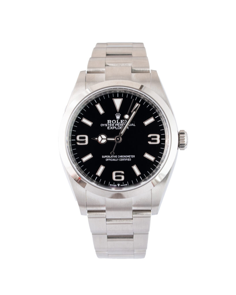 brand: Rolex Reference: 124270 Model: Explorer case MATERIAL: Steel strap: Bracelet case Size (MM): 36mm Dial colour: Black Bezel: Steel Condition: Excellent Box papers : Paperwork/box