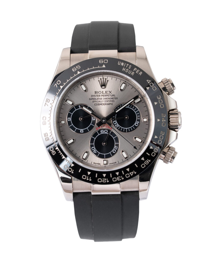 brand: Rolex Reference: 116519LN Model: Daytona case MATERIAL: White Gold strap: Rubber case Size (MM): 40mm Dial colour: Silver Bezel: Ceramic Year: 09/2020 Condition: Excellent Box papers : Paperwork/box