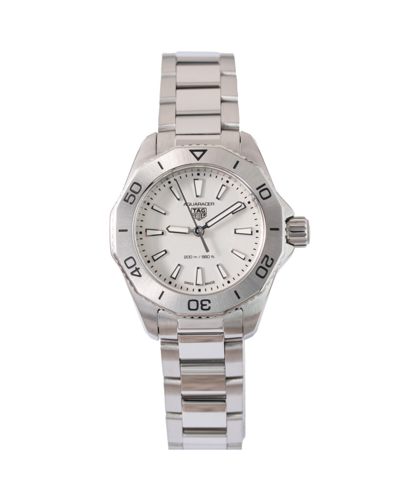 brand: Tag Heuer Reference: WBP1411 Model: Aquaracer Lady case MATERIAL: Steel strap: Bracelet case Size (MM): 30mm Dial colour: Silver Bezel: Steel Condition: Excellent Box papers : Paperwork/box