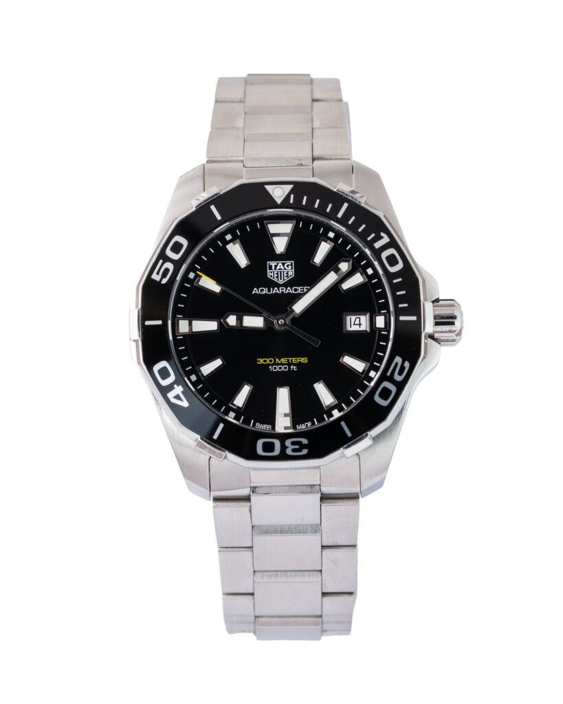 brand: Tag Heuer Reference: WAY111A Model: Aquaracer case MATERIAL: Steel strap: Bracelet case Size (MM): 41mm Dial colour: Black Bezel: Steel Year: 01/2019 Condition: Excellent Box papers : Paperwork/box