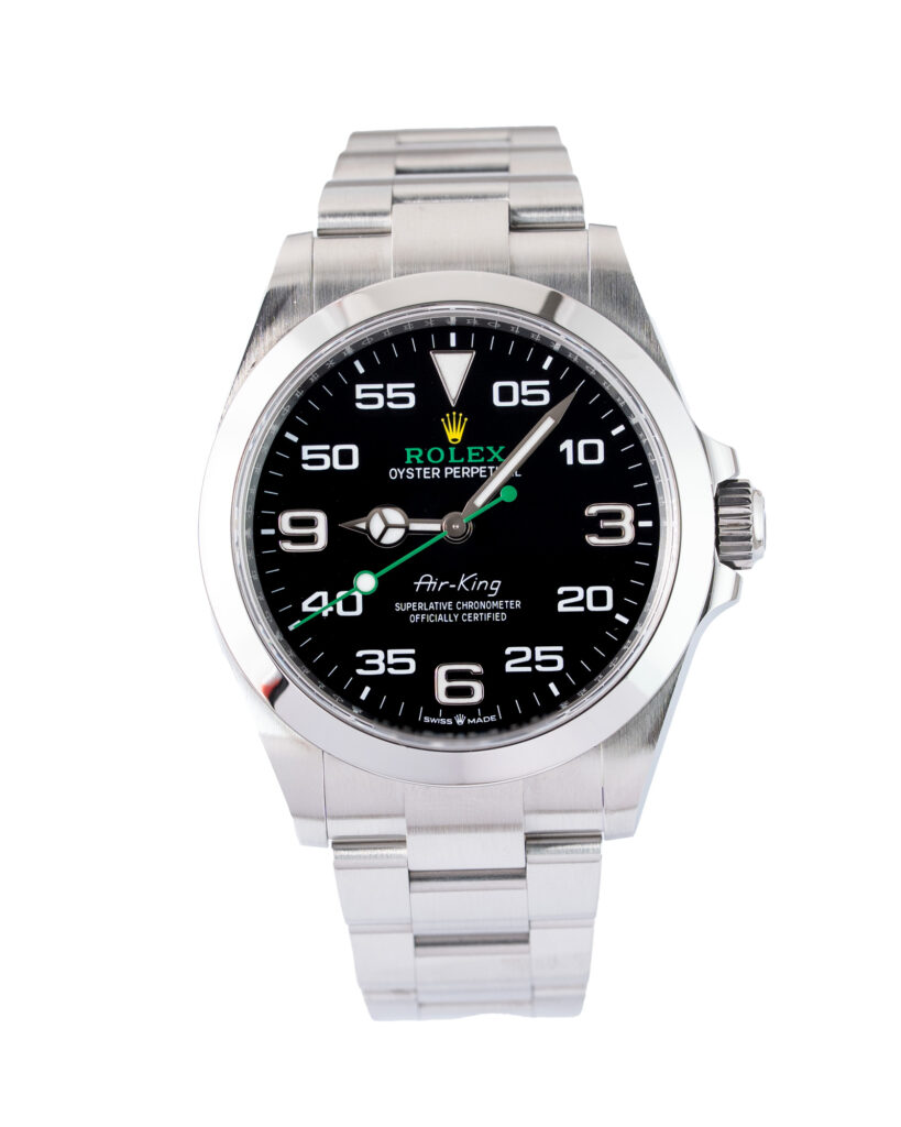 brand: Rolex Reference: 126900 Model: Air-King case MATERIAL: Steel strap: Bracelet case Size (MM): 40mm Dial colour: Black Bezel: Steel Year: 10/2023 Condition: Excellent Box papers : Paperwork/box