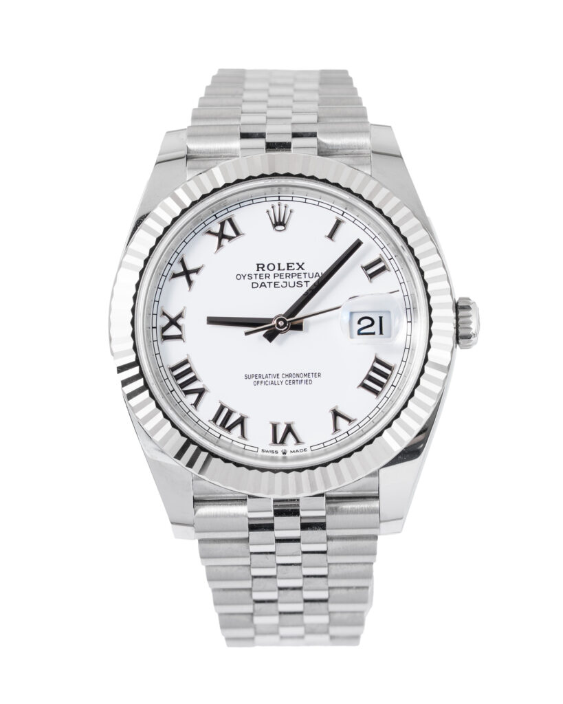 brand: Rolex Reference: 126334 Model: Datejust case MATERIAL: Steel strap: Bracelet case Size (MM): 41mm Dial colour: White Bezel: White Gold Year: 03/2022 Condition: Unworn Box papers : Paperwork/box