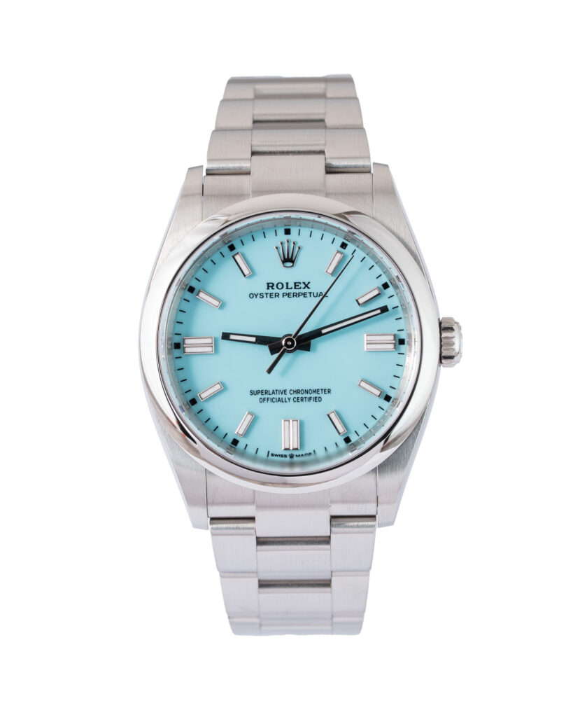 brand: Rolex Reference: 126000 Model: Oyster Perpetual case MATERIAL: Steel strap: Bracelet case Size (MM): 36mm Dial colour: Blue Bezel: Steel Year: 05/2024 Condition: Excellent Box papers : Paperwork/box