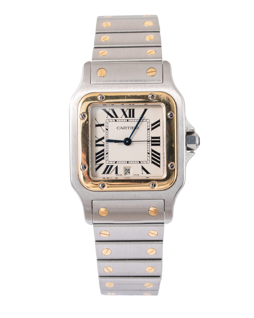 brand: Cartier Reference: 1566 Model: Santos Galbee case MATERIAL: Steel & Yellow Gold strap: Bracelet case Size (MM): 29mm Dial colour: White Bezel: Yellow Gold Year: 07/1998 Condition: Excellent Box papers : Complete