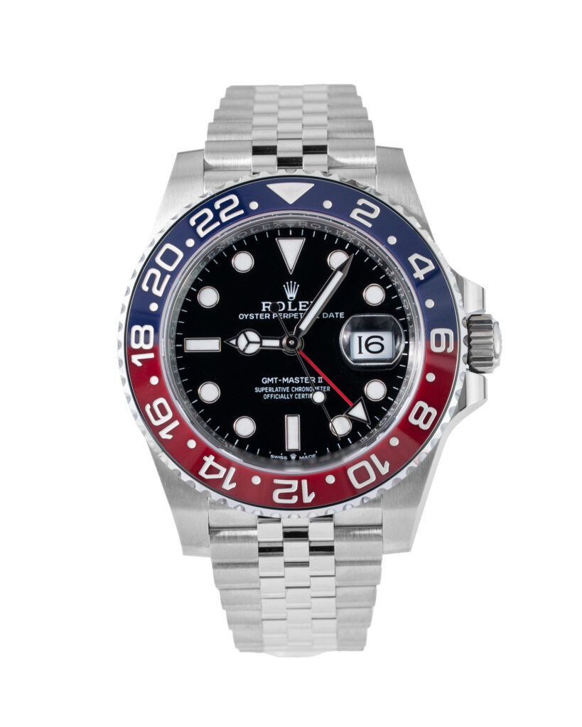 brand: Rolex Reference: 126710BLRO Model: GMT-Master II case MATERIAL: Steel strap: Bracelet case Size (MM): 40mm Dial colour: Black Bezel: Ceramic Year: 09/2025 Condition: Unworn Box papers : Paperwork/box
