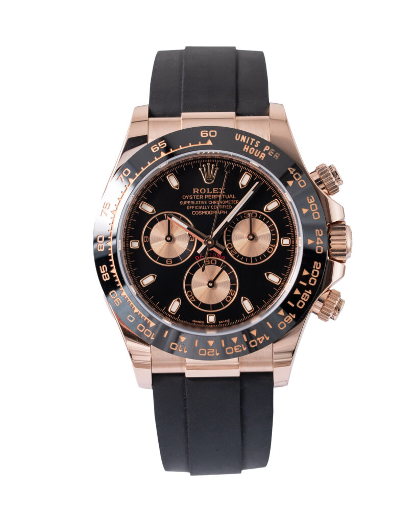 brand: Rolex Reference: 116515LN Model: Daytona case MATERIAL: Rose Gold strap: Rubber case Size (MM): 40mm Dial colour: Black Bezel: Ceramic Year: 07/2022 Condition: Excellent Box papers : Paperwork/box