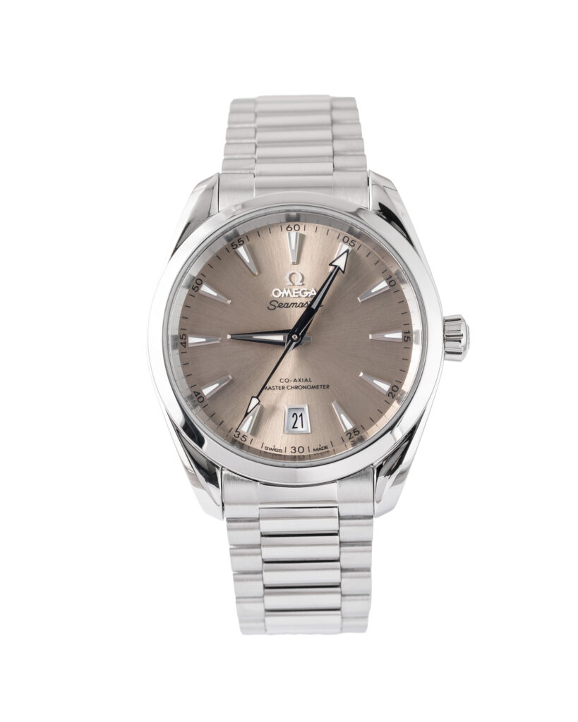 brand: Omega Reference: 220.10.38.20.09.001 Model: Seamaster Aqua Terra case MATERIAL: Steel strap: Bracelet case Size (MM): 38mm Dial colour: Silver Bezel: Steel Year: 01/2025 Condition: Excellent Box papers : Paperwork/box