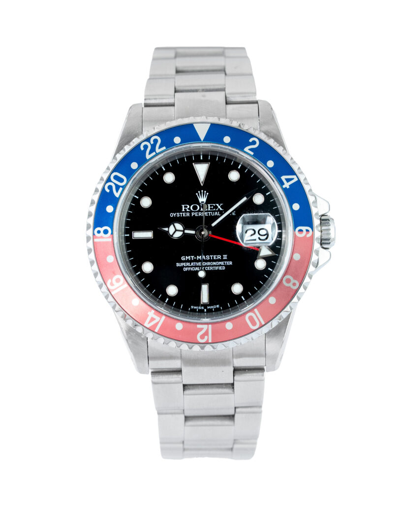brand: Rolex Reference: 16710 Model: GMT-Master II case MATERIAL: Steel strap: Bracelet case Size (MM): 40mm Dial colour: Black Bezel: Steel Condition: Excellent Box papers : Paperwork/box