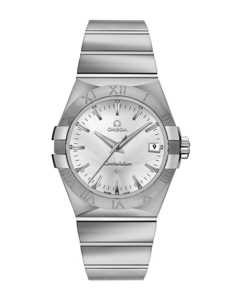 brand: Omega Reference: 123.10.35.60.02.001 Model: Constellation Quartz case MATERIAL: Steel strap: Bracelet case Size (MM): 36mm Dial colour: Silver Bezel: Steel Year: 11/2014 Condition: Excellent Box papers : Paperwork/box