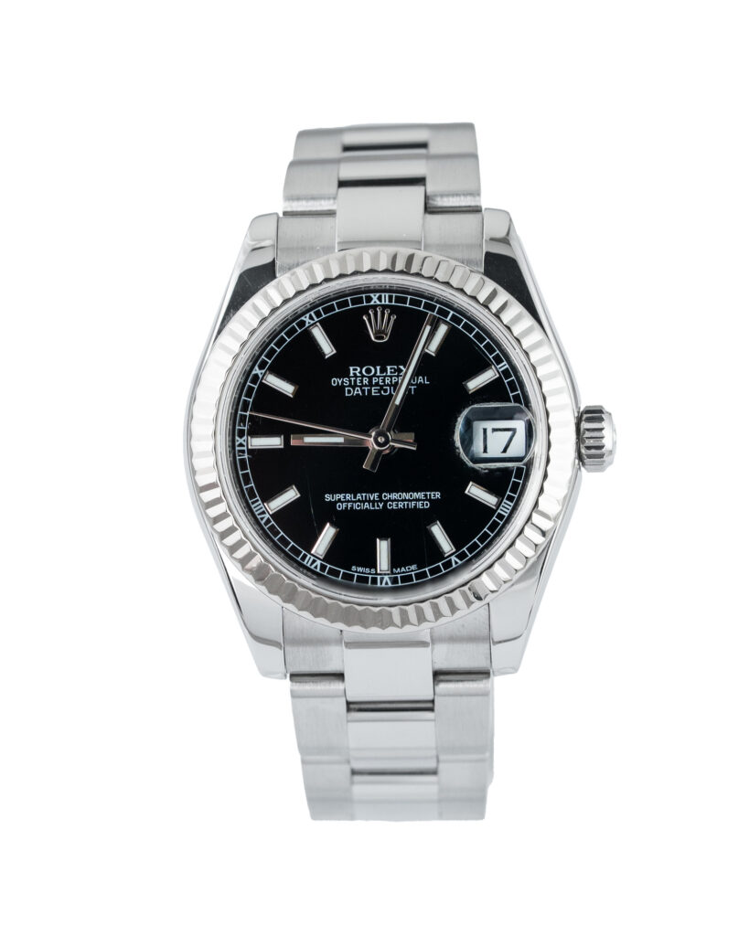 brand: Rolex Reference: 178274 Model: Datejust case MATERIAL: Steel strap: Bracelet case Size (MM): 31mm Dial colour: Black Bezel: Steel Year: 07/2015 Condition: Excellent Box papers : Paperwork/box