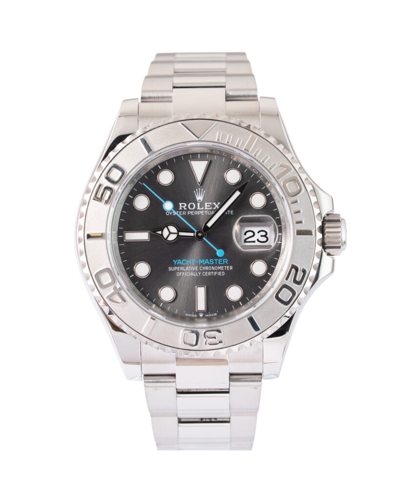 brand: Rolex Reference: 126622 Model: Yacht-Master case MATERIAL: Steel strap: Bracelet case Size (MM): 40mm Dial colour: Grey Bezel: Platinum Year: 11/2024 Condition: Excellent Box papers : Paperwork/box