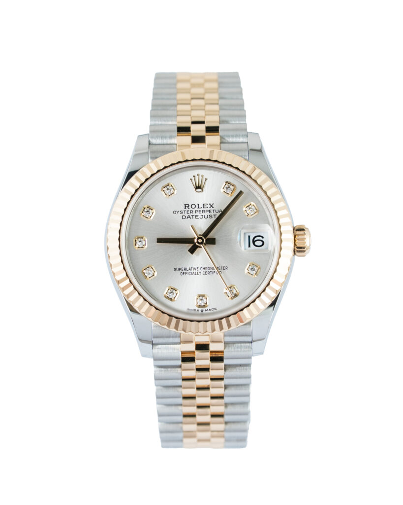 brand: Rolex Reference: 278273 Model: Datejust case MATERIAL: Steel & Yellow Gold strap: Bracelet case Size (MM): 31mm Dial colour: Silver Bezel: Yellow Gold Year: 11/2023 Condition: Excellent Box papers : Paperwork/box