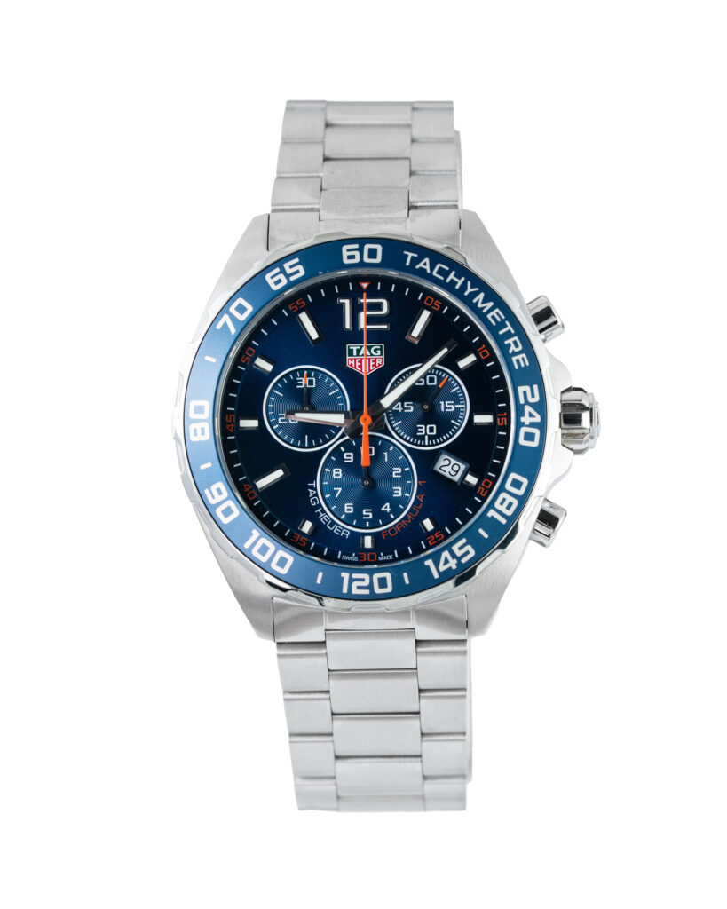 brand: Tag Heuer Reference: CAZ1014 Model: Formula 1 case MATERIAL: Steel strap: Bracelet case Size (MM): 43mm Dial colour: Blue Bezel: Steel Year: 08/2020 Condition: Excellent Box papers : Paperwork/box