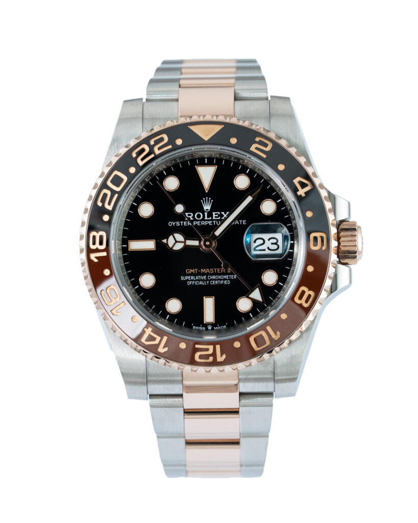 brand: Rolex Reference: 126711CHNR Model: GMT-Master II case MATERIAL: Steel & Rose Gold strap: Bracelet case Size (MM): 40mm Dial colour: Black Bezel: Ceramic Year: 04/2019 Condition: Excellent Box papers : Paperwork/box