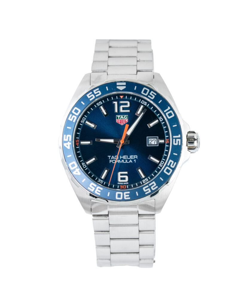 brand: Tag Heuer Reference: WAZ1010 Model: Formula 1 case MATERIAL: Steel strap: Bracelet case Size (MM): 43mm Dial colour: Blue Bezel: Steel Year: 02/2018 Condition: Excellent Box papers : Paperwork/box