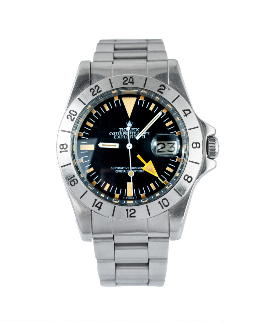 brand: Rolex Reference: 1655 Model: Explorer II case MATERIAL: Steel strap: Bracelet case Size (MM): 40mm Dial colour: Black Bezel: Steel Year: 05/1978 Condition: Excellent Box papers : Watch Only
