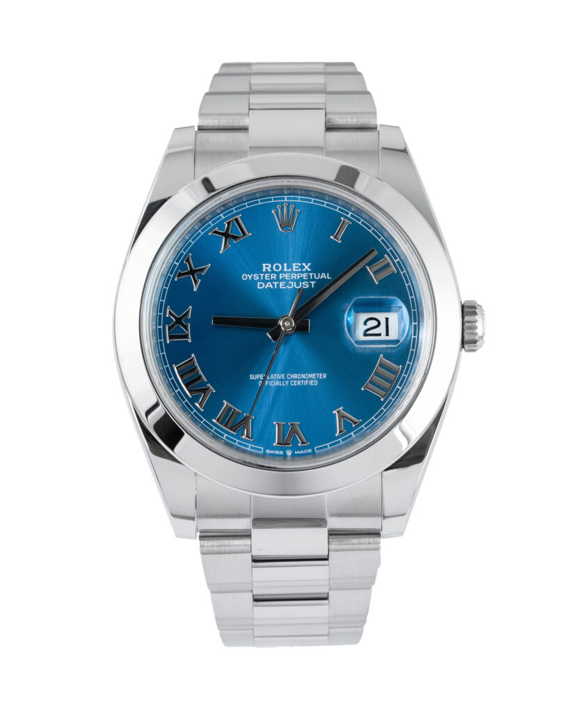 brand: Rolex Reference: 126300 Model: Datejust case MATERIAL: Steel strap: Bracelet case Size (MM): 41mm Dial colour: Blue Bezel: Steel Year: 02/2024 Condition: Excellent Box papers : Paperwork/box