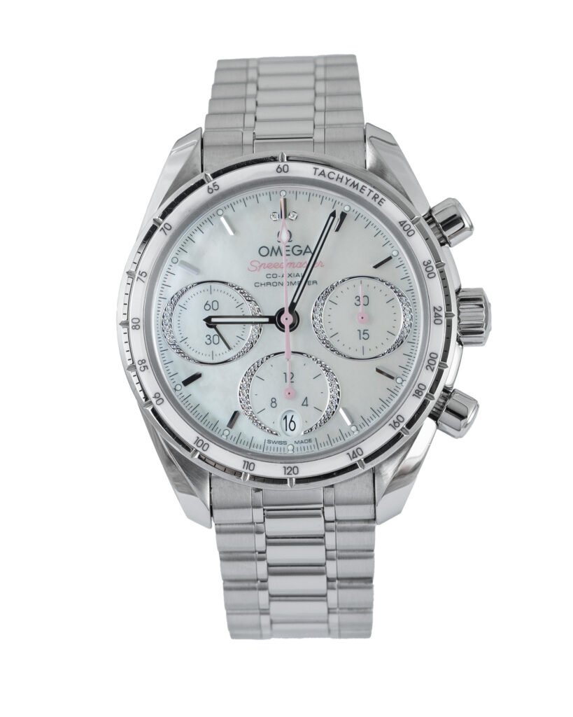 brand: Omega Reference: 324.30.38.50.55.001 Model: Speedmaster case MATERIAL: Steel strap: Bracelet case Size (MM): 38mm Dial colour: Mother Of Pearl Bezel: Ceramic Year: 05/2025 Condition: Excellent Box papers : Paperwork/box