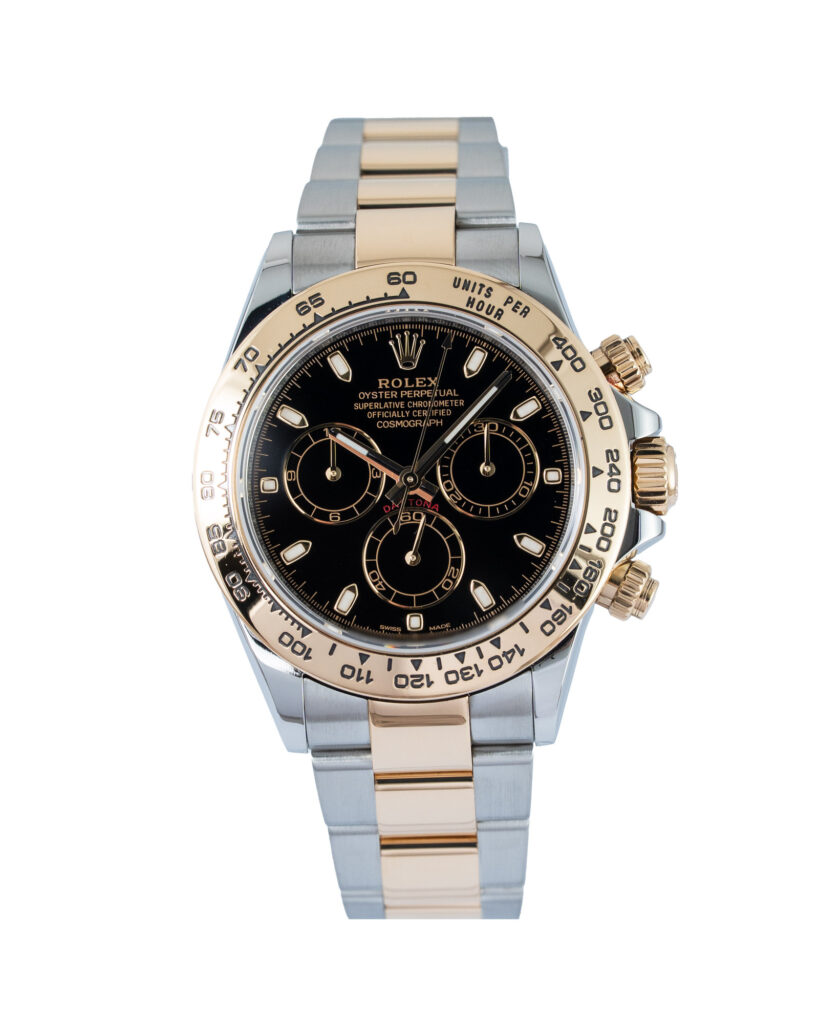 brand: Rolex Reference: 116503 Model: Daytona case MATERIAL: Steel & Yellow Gold strap: Bracelet case Size (MM): 40mm Dial colour: Black Bezel: Yellow Gold Year: 02/2020 Condition: Excellent Box papers : Paperwork/box