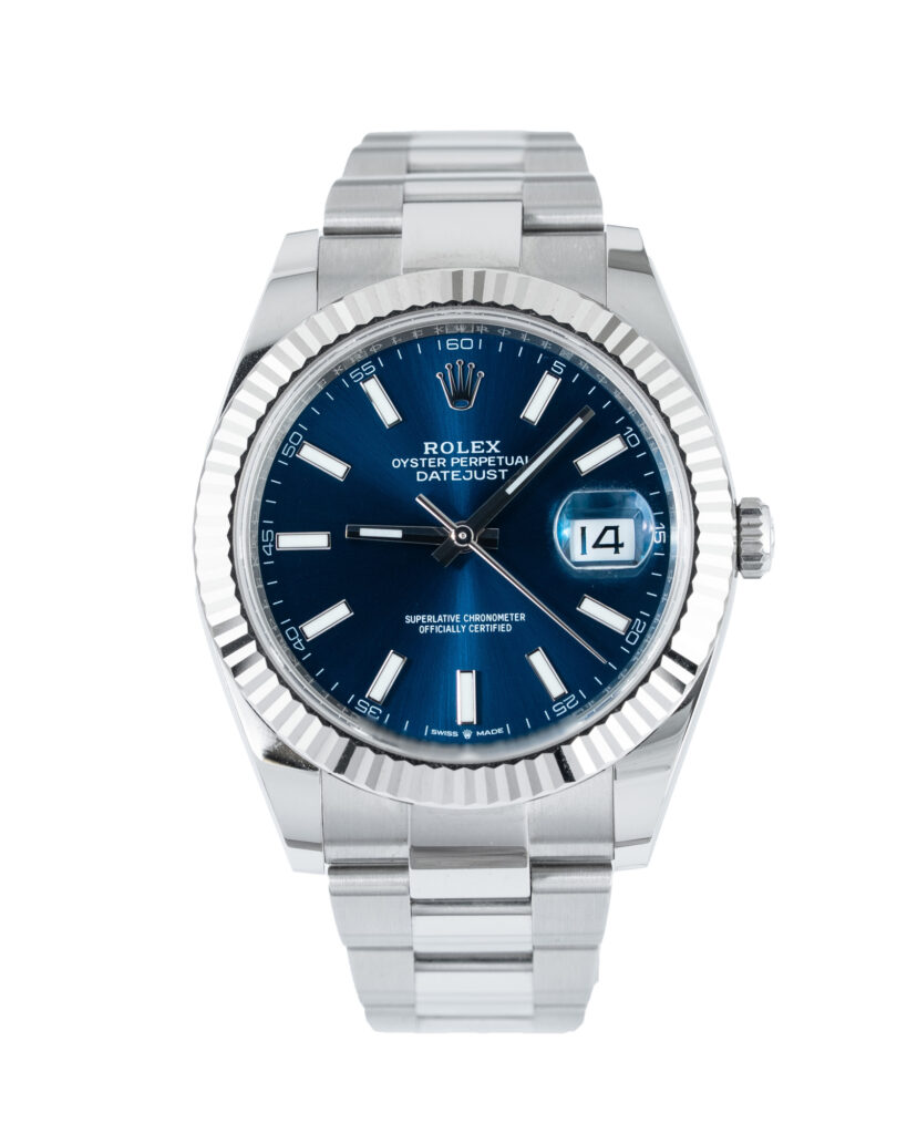 brand: Rolex Reference: 126334 Model: Datejust case MATERIAL: Steel strap: Bracelet case Size (MM): 41mm Dial colour: Blue Bezel: White Gold Year: 08/2022 Condition: Excellent Box papers : Paperwork/box