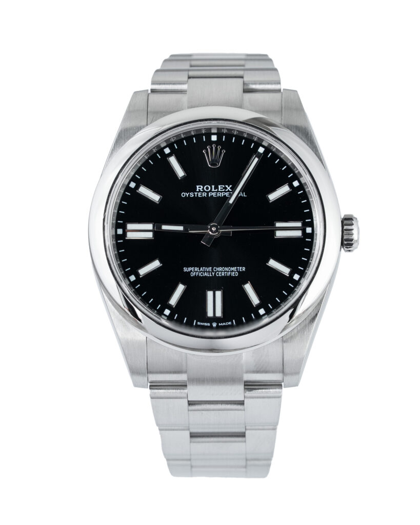 brand: Rolex Reference: 124300 Model: Oyster Perpetual case MATERIAL: Steel strap: Bracelet case Size (MM): 41mm Dial colour: Black Bezel: Steel Year: 06/2023 Condition: Excellent Box papers : Paperwork/box